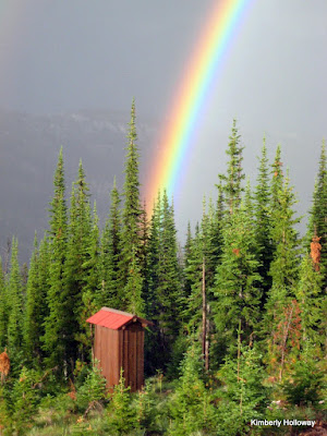 When the rainbow was gone and the dark skies cleared, I ventured down to the privy. I was pleasantly surprised to find that this was yet another, loo with a view (lwav). Facing East and enjoying the mountains of the Eastern side of Glacier National Park.